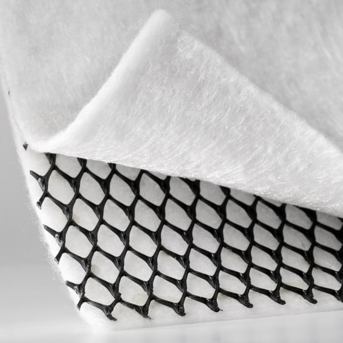 Дренажный геокомпозит – это геоматериал, который применяется в земляных работах как водоотводящий и фильтрующий слой. Дренажный геокомпозит состоит из термически склеенных или скрепленных слоёв и объёмного полимерного водоотводящего слоя из решетки или геомата.